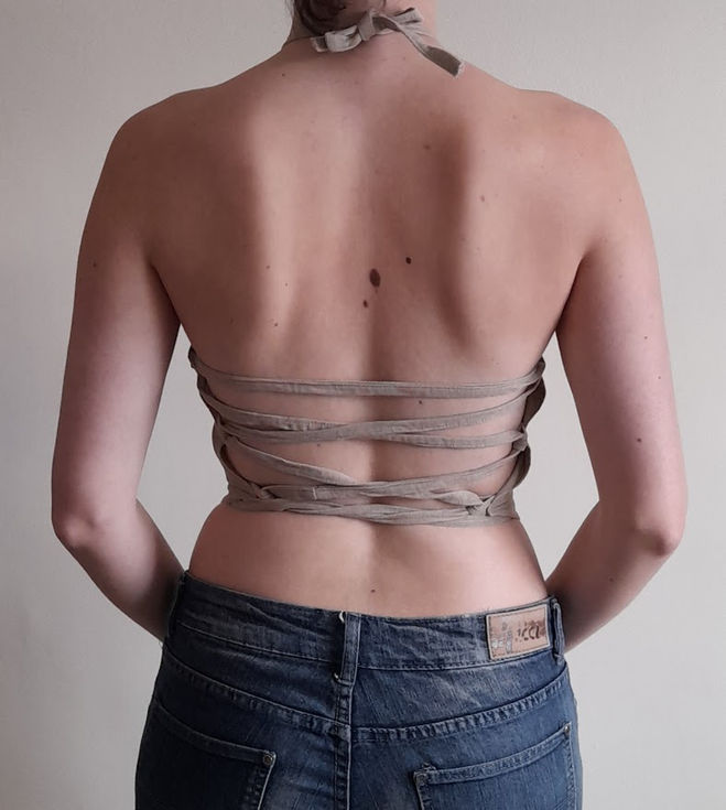 The Beige Halter Neck Top was inspired by an existing top that I owned however I made alterations for this piece by changing the design of the back. The top is made from a light cream corduroy fabric.