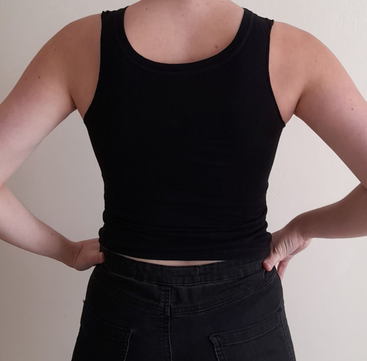 The Upcycled Black Vest Top was deconstructed from an old black t-shirt; I wanted to give it a second life.